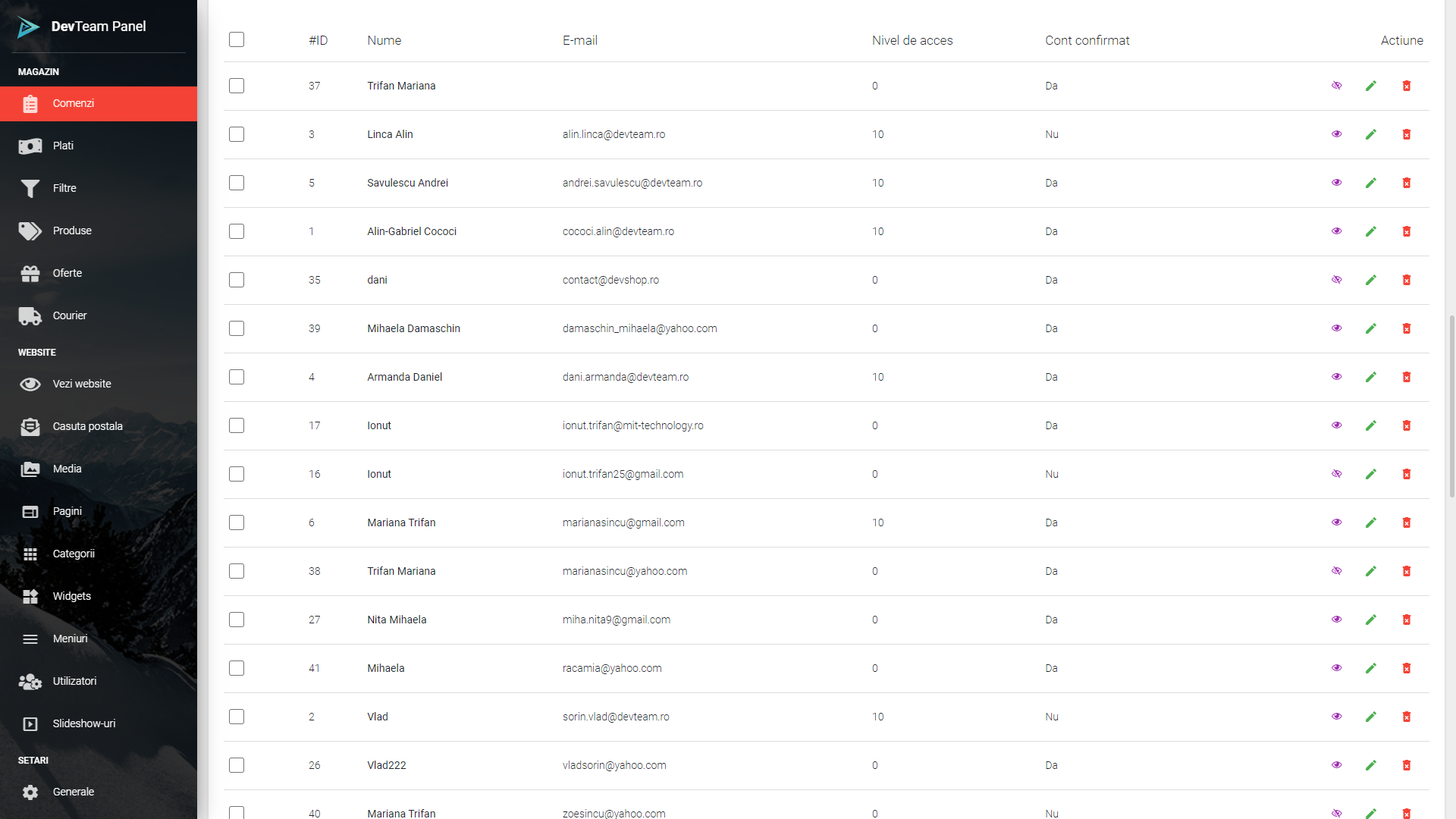 • Panou de administrare;