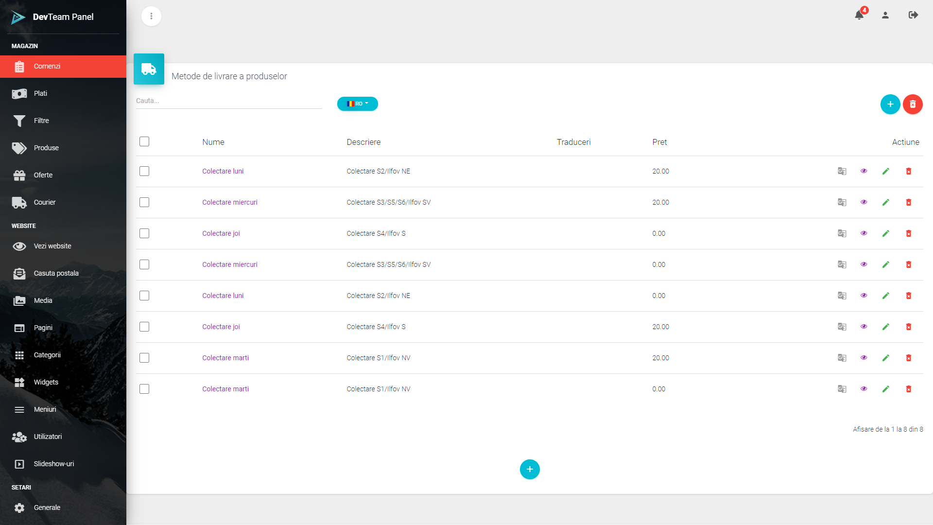 • Administrare ușoara a produselor: filtrare, sortare și paginare în timp real, discount, promoții programabile.